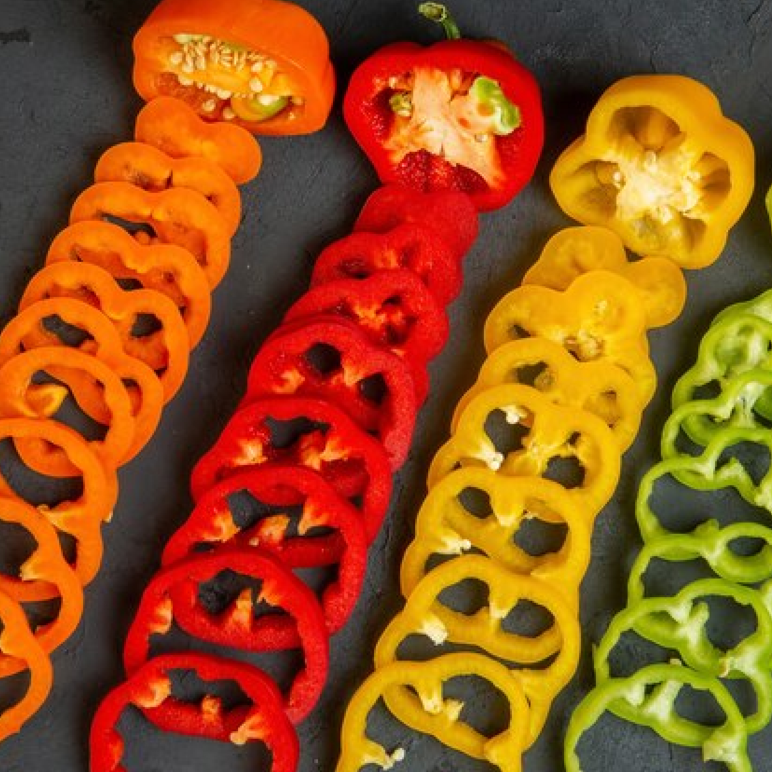 • 1kg de pimientos variados (california rojo, amarillo y verde y pimiento italiano rojo)